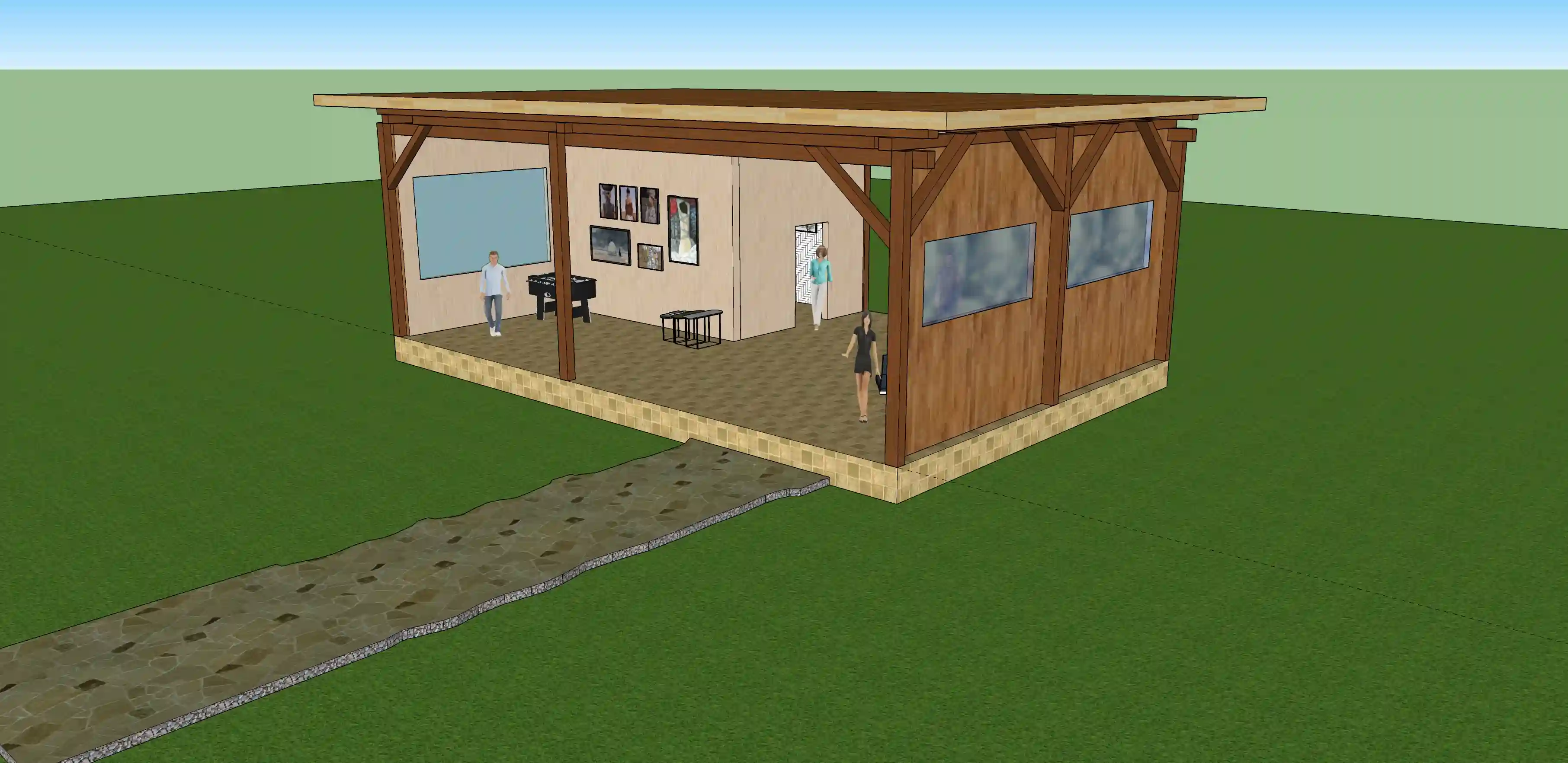 The Student Art & Leisure Pavilion is an environmentally friendly wooden structure designed to support creative expression and student well-being on campus. Built using a simple yet strong timber framework, the pavilion emphasizes sustainability through the use of natural materials and thoughtful structural design.